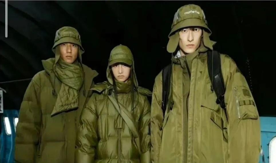 整场舆论最大的争议点是“神工天物”板块中那套深橄榄绿色羽绒服的帽子帽帘设计,据官方介绍,整场产品设计以“飞行”为主题,从飞行员装备中汲取灵感,飞行帽设计源于中国古代头盔、户外防护帽及棉帽。