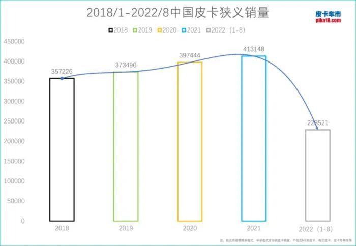 然而受到全球经济下行,汽车产业供应链压力增加,疫情反复等原因,更加开放的政策并没有换来皮卡行业的“雨后彩虹”。相反,在2022年国内皮卡销量自18年来首次大幅滑坡,再现行业寒冬。