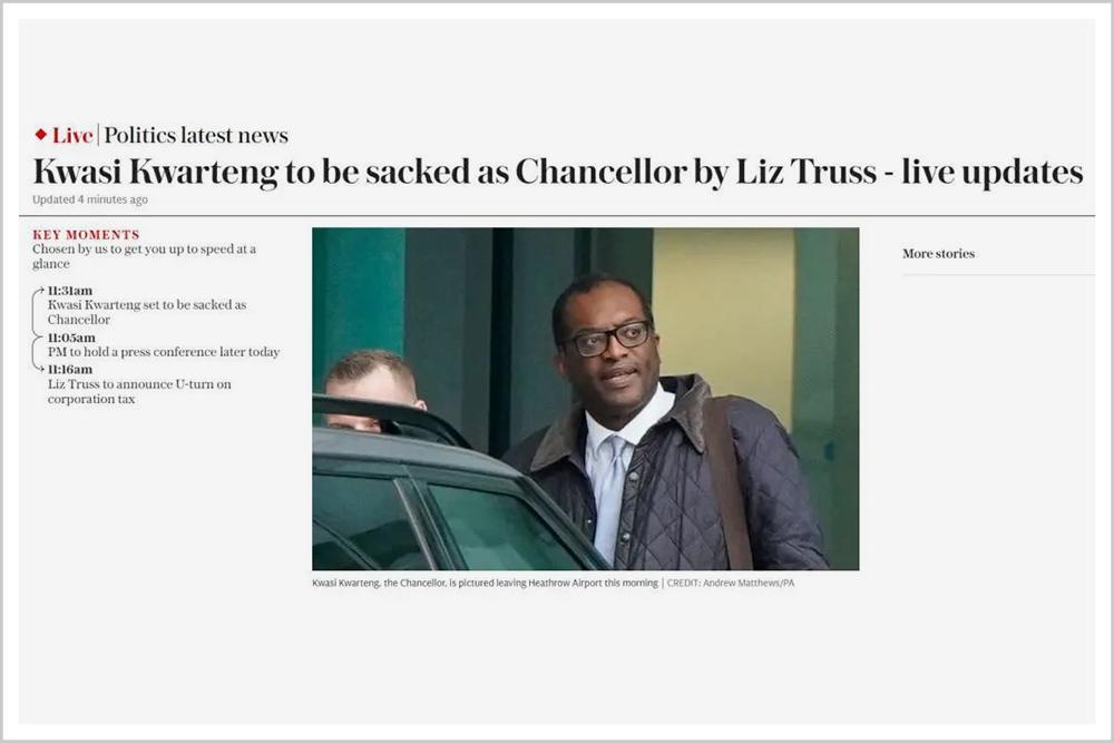 在不到一个月的时间里,特拉斯身体力行,给全世界上解释了一下什么叫“朝令夕改”。