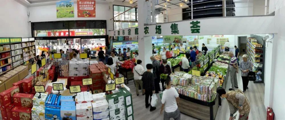 与主打“生活用品”的蓉邮生活超市相比,苏锡杭生鲜超市不光面积大,在门店属性上更偏“永辉化”,“江阴市家庭农场集荟”、“农场直销”等标语也表明其以生鲜农产品为抓手,为老百姓提供高性价比、高频刚需产品的项目定位。