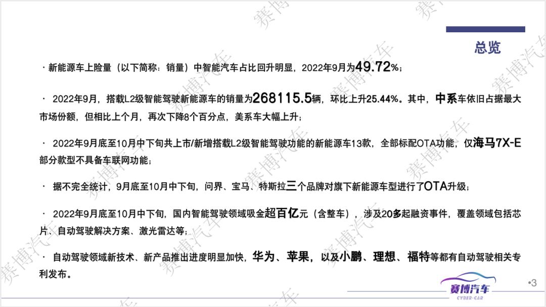 《赛博汽车》出品的2022年10月《智能网联汽车月报》要点: