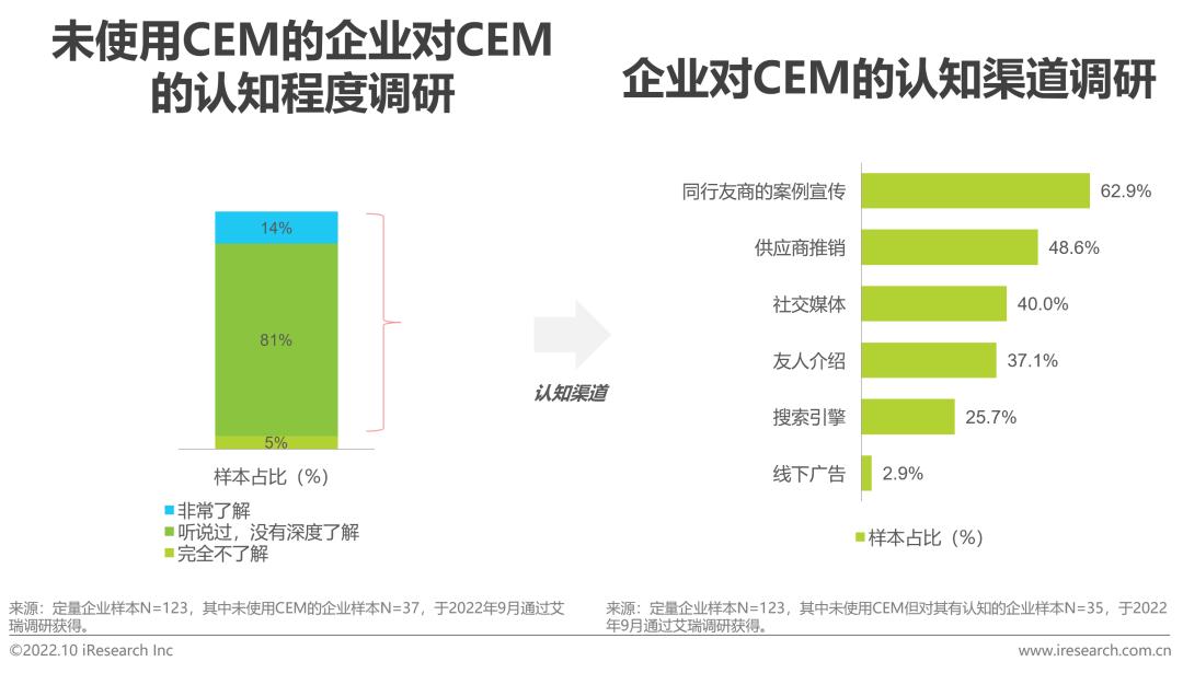 未使用CEM的企业中仅5%的企业表示对CEM完全不了解,同行友商的案例宣传为最主要认知渠道