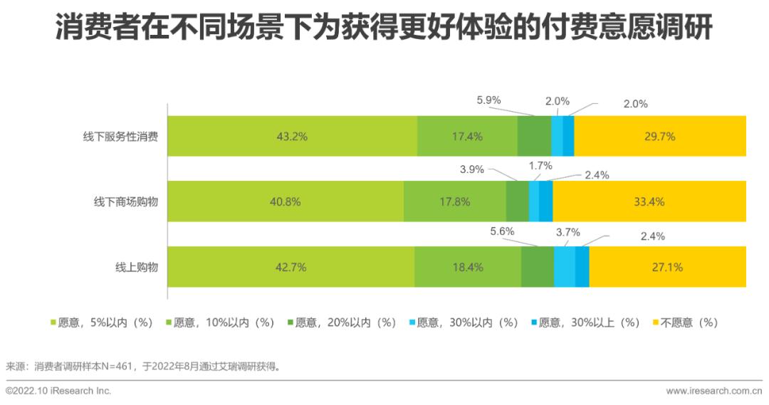 在不同场景下,消费者均愿意为获得更好的体验而接受溢价