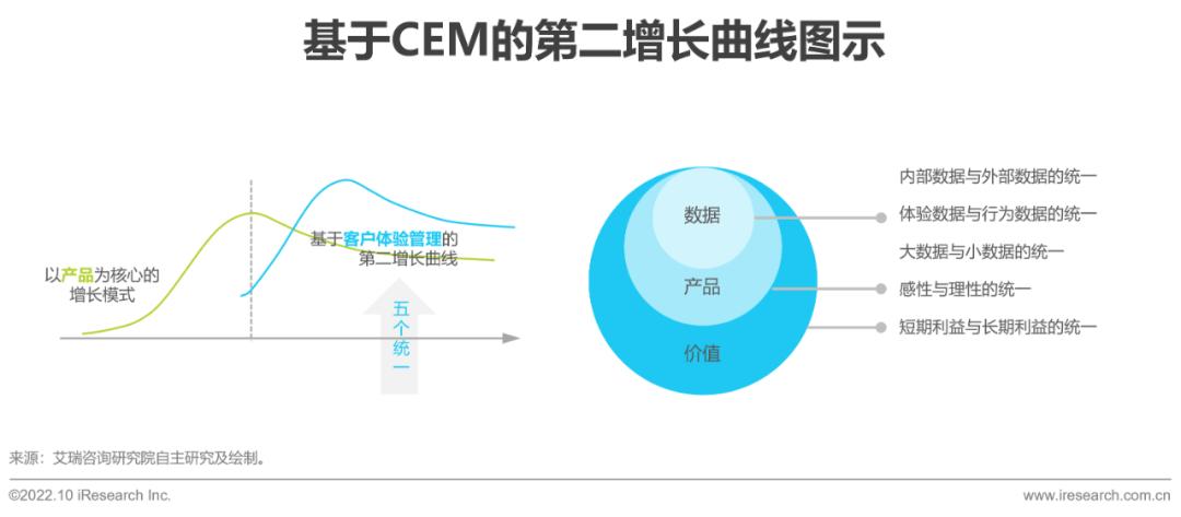 随着人口及流量红利的逐步见顶,多数行业开始进入存量运营时代,存量时代的到来使企业愈发认识到客户数据的重要性。在数据源方面,CEM集成了来自私域及公域流量池的全域数据,助力企业有效盘活“沉睡”的客户数据,挖掘潜在客户价值;在价值输出上,良好的客户体验有利于提升老顾客复购率、增强客户粘性,进而促成口碑营销,在实现多渠道引流的同时,也降低了获客成本。此外,CEM实现了内部私域数据与外部公域数据、体验数据与行为数据、大数据与小数据、产品的感性属性(如问卷的个性化设计)与理性属性(多元异构数据)及企业的短期利益(业务增长)与长期利益(口碑效应)五个“统一”,基于五个“统一”的客户体验管理为企业带来了业绩第二增长曲线,在未来也将不断释放更大价值。