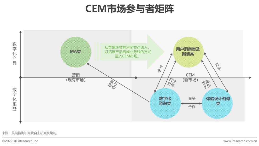 于MA类来说,营销市场为现有市场,目前已有部分厂商进行产品线或业务线的拓展,进入CEM新市场中。整体上看,CEM各类玩家均围绕“以客户为中心”的核心理念,相互寻求长期战略制或项目制合作,共建行业生态,不断探索CEM未来的更多可能性。