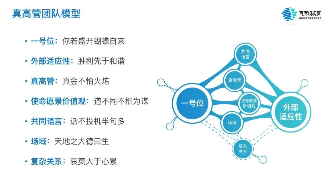 无论是真高管团队也好,还是所谓的core team(核心团队),对于CEO或一号位来说都是非常重要的。所以很多时候并不是如何找到真高管团队,而是如何请走一些不属于真高管团队的人,这往往是更难的。