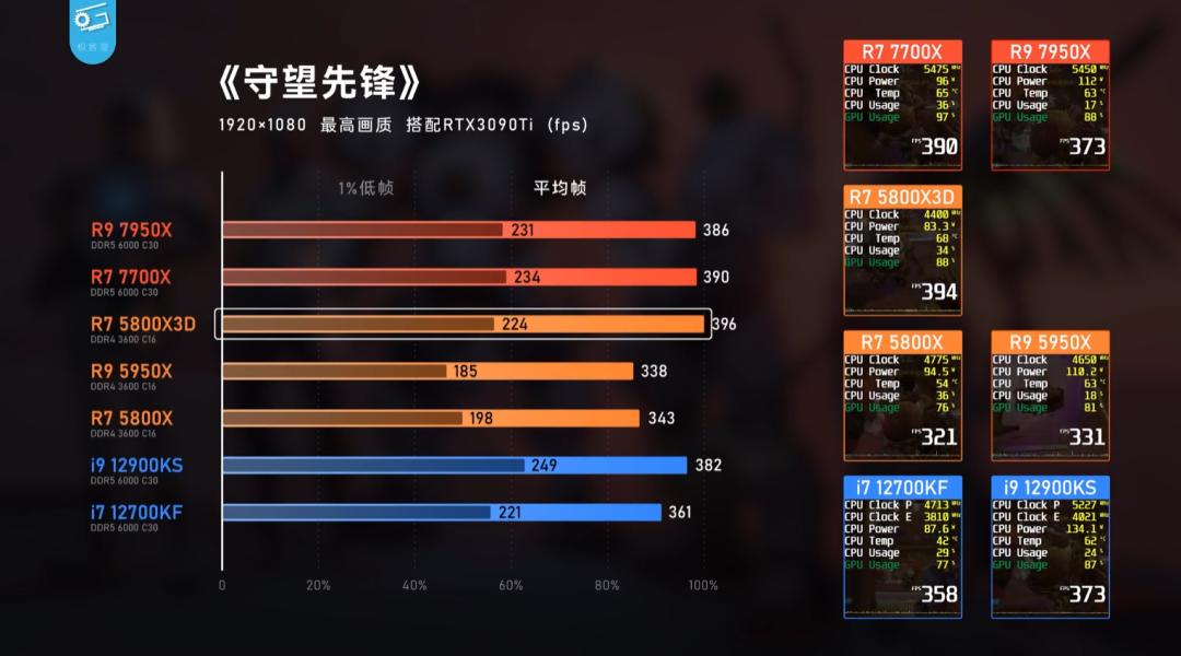 AMD 在今年早些时候,发了一款加强了缓存的 5800X 3D,这枚处理器在游戏上的表现,同样是单刀直入、无出其右的现象级表现。