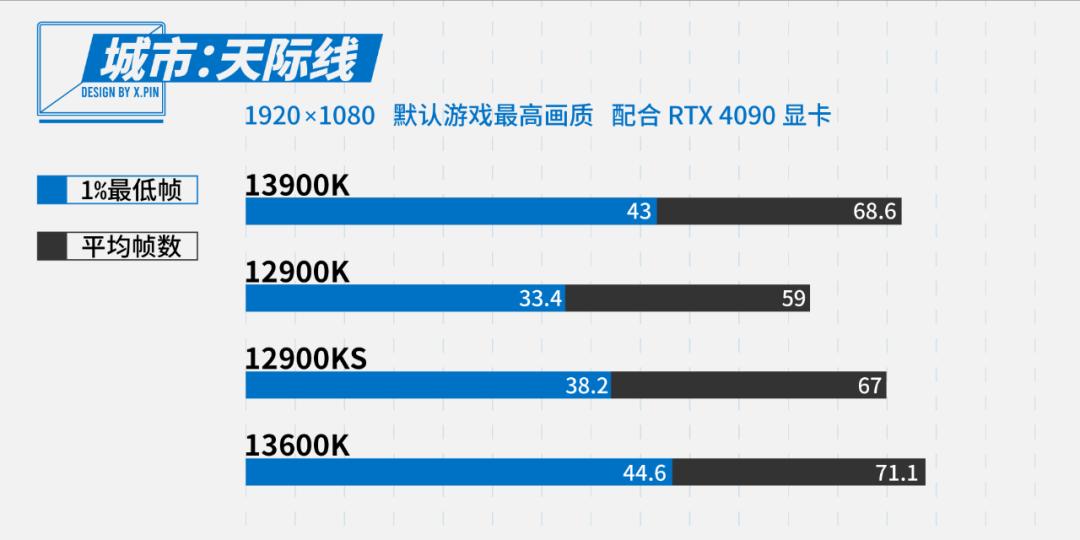 然而这款游戏的帧数表现还是比较正常的,13600K 在这里没有超常发挥,13900K 硬实力第一。