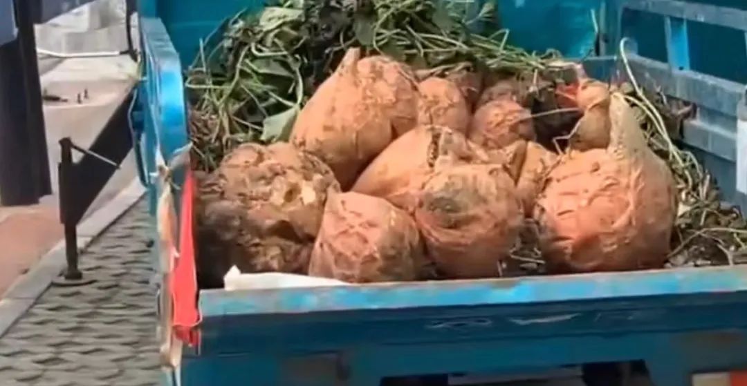 视频中只是一筐普普通通的地瓜,只是它的个头,让其显得如此不普通。