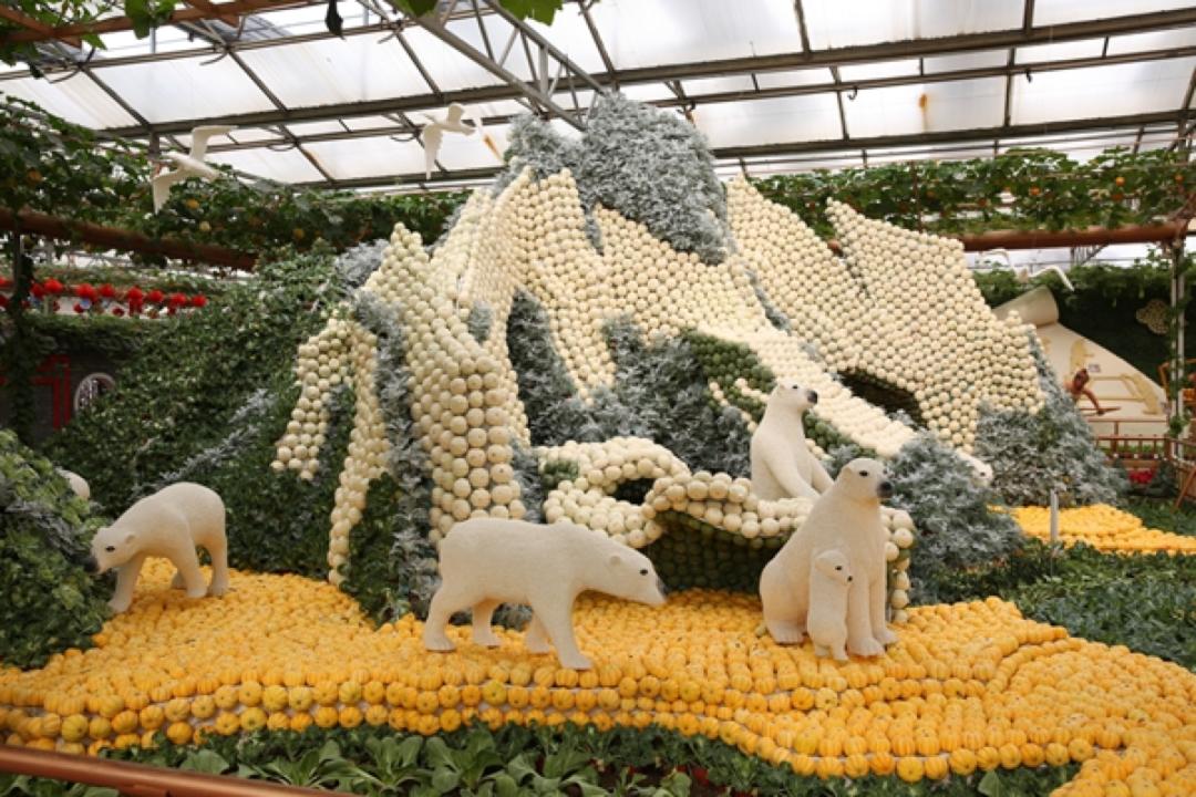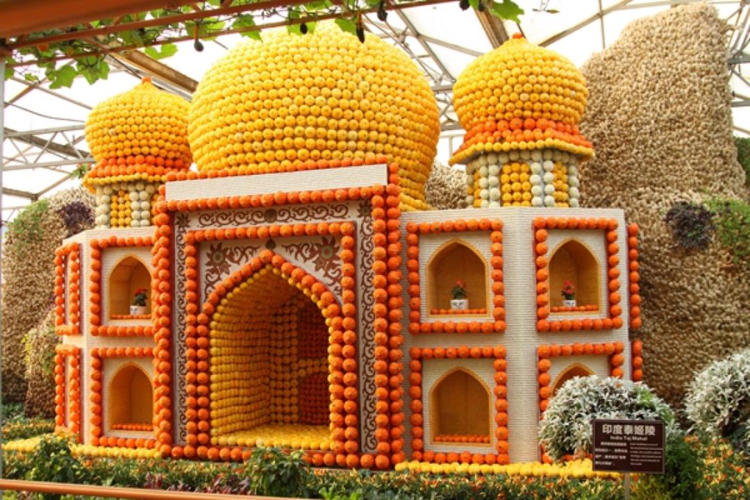 寿光菜博会上,蔬果组成的巨大“泰姬陵”/图源中国(寿光)国际蔬菜科技博览会官网