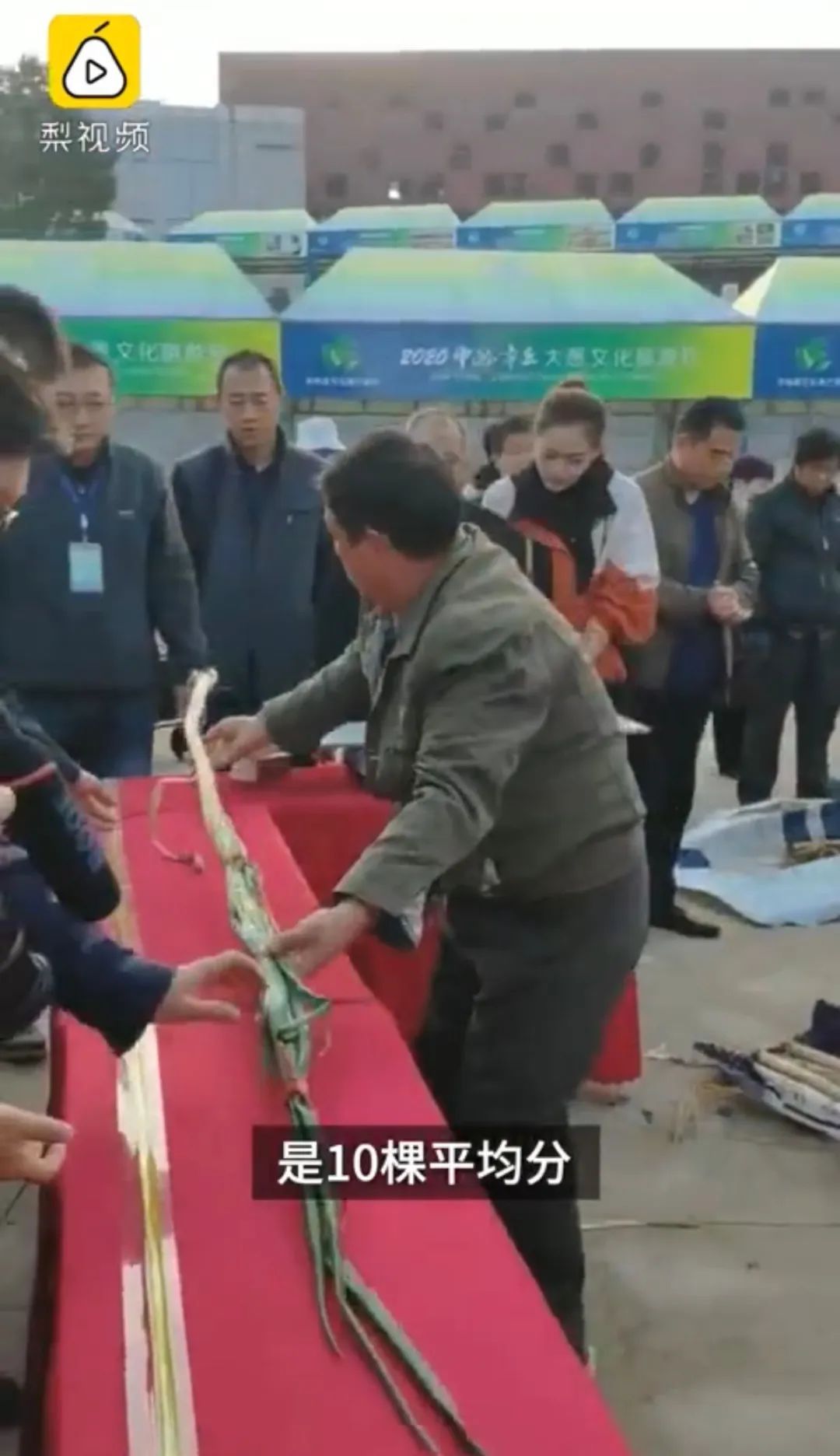报名挑选上来的大葱,10棵组成一捆,农业专家对它们的长度、葱白、葱重、葱径粗度等进行综合评审, 取平均值后,选出其中的冠军。
