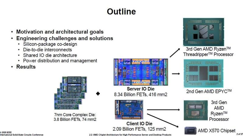 具体而言,在第一阶段“封闭”状态下,是企业内部的芯片模块复用,这时候企业常常只需要更新最重要的计算单元。比如AMD通过计算单元(CCD)和接口单元(IOD)组合,形成不同规格的服务器和个人电脑芯片,并且3代芯片的接口单元用了2代芯片的IO控制部分。