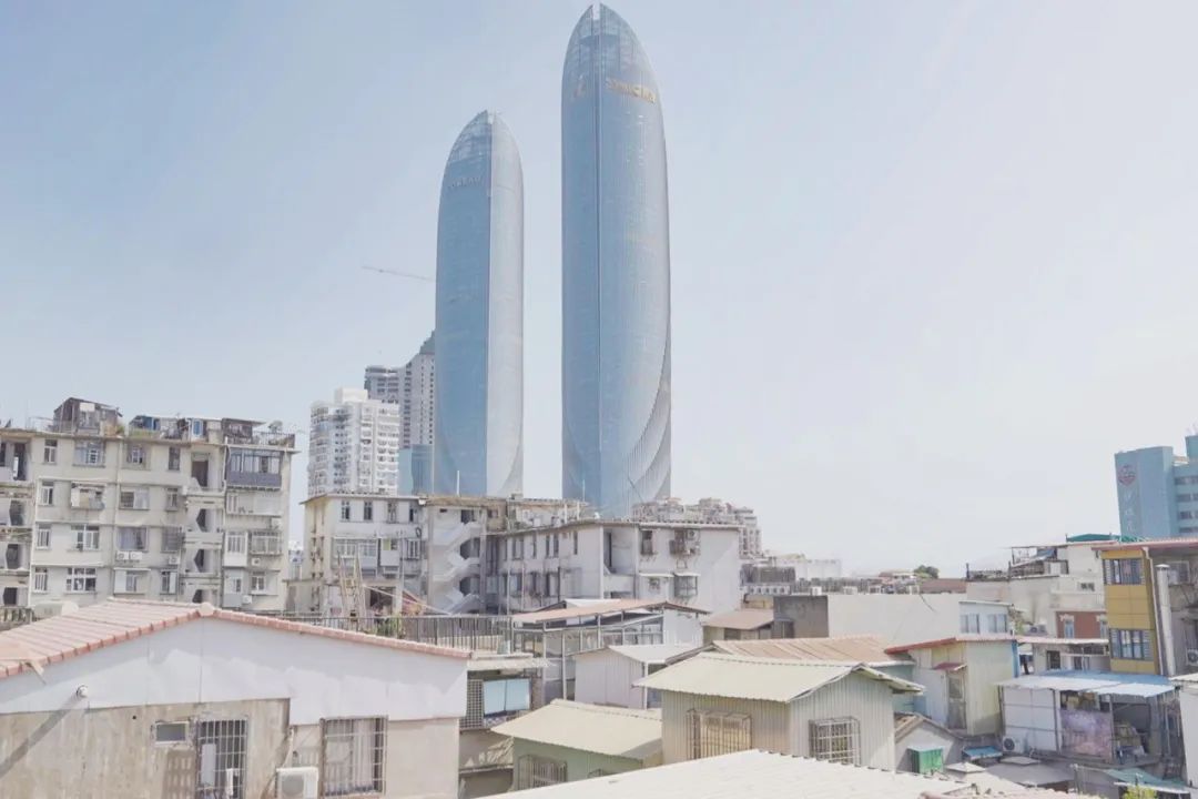 拍摄的当天,我们登上了海祥大厦顶楼的天台,保安大叔微笑着跟了上来。傍晚时分,太阳正以肉眼可见的速度落入海中,海面浮光跃金。在天台上,年轻的朋友们一起吹着风、观看远处的落日海景,大笑着聊天,看上去无忧无虑的样子。