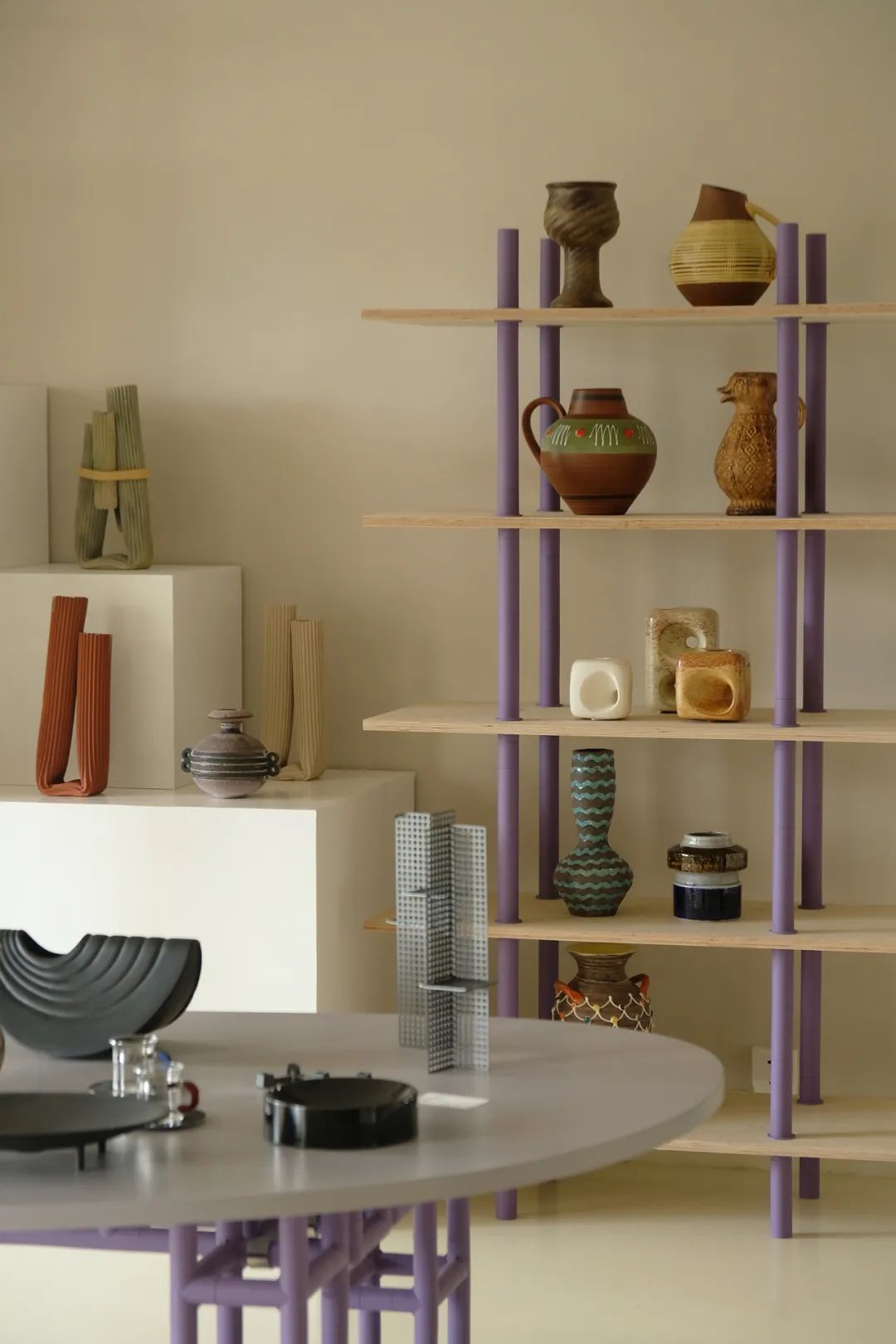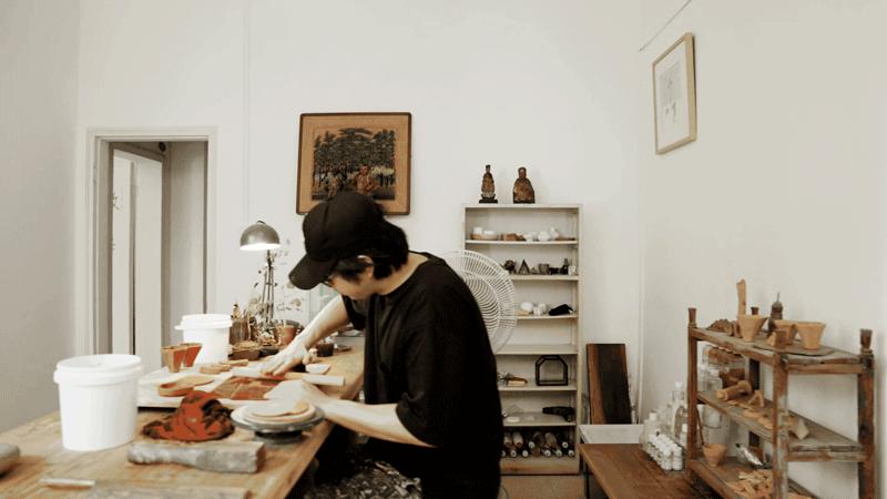 这种“附近”的感觉,使得彼此之间的影响时时刻刻都在发生,海祥大厦五层共用一个洗手间,每天Peter都会穿过bathroom的展厅,那些中古、中世纪现代风格的陶器,对他做陶也是一种启发。