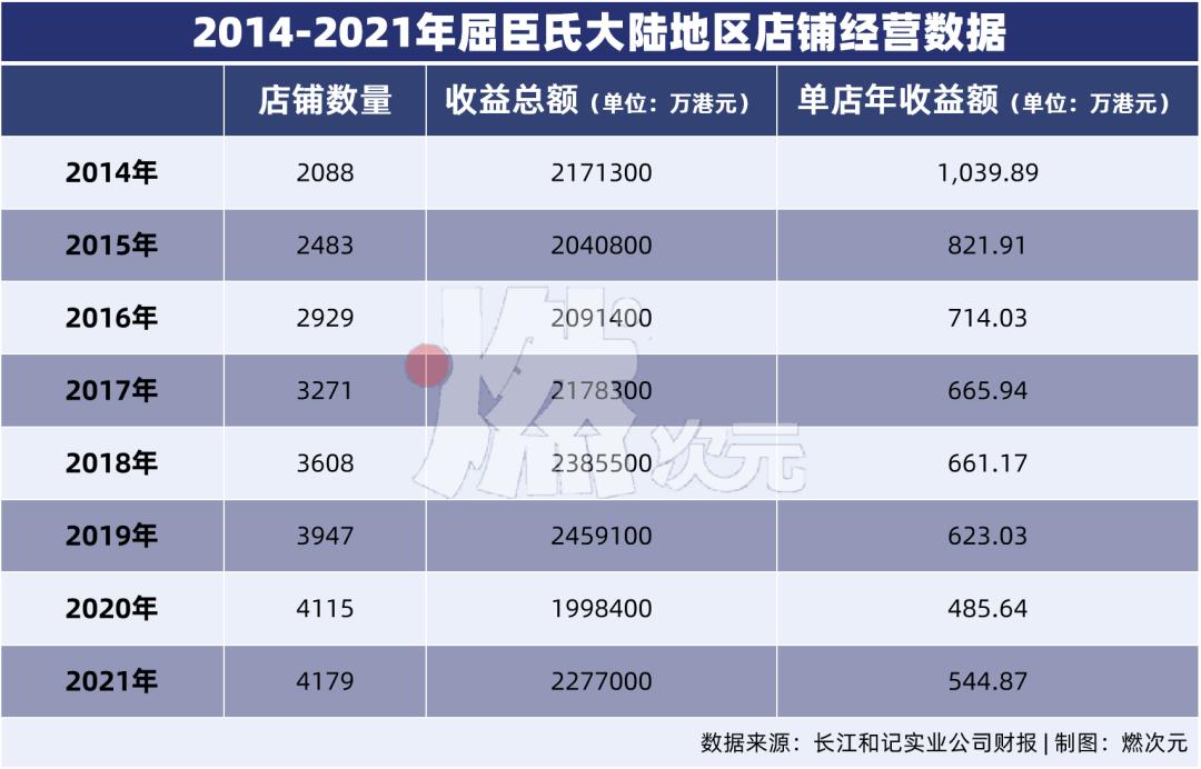 图/屈臣氏大陆地区收益数据 ,来源/燃次元制图