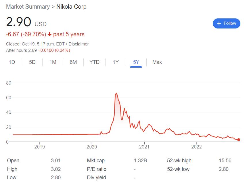 但市场并不认可这个回应,Nikola股价连续大幅下跌,市值蒸发了超过一半。