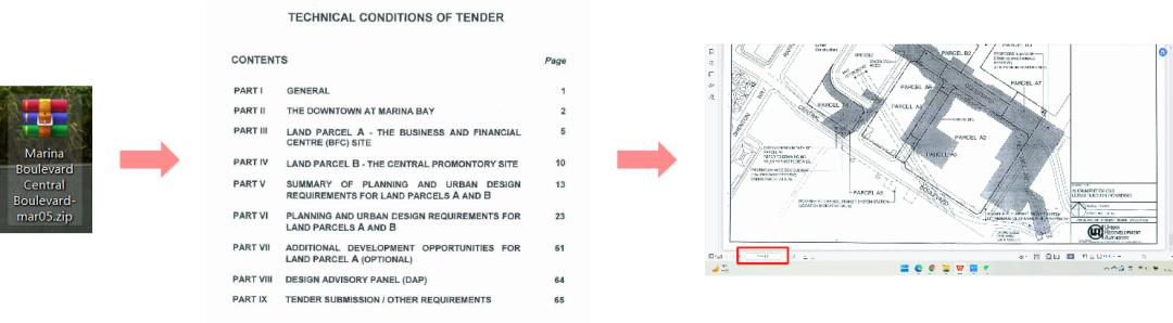 一份长达93页的土地设计规划,以及各种记录土地详细参数的设计图纸。