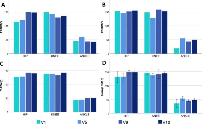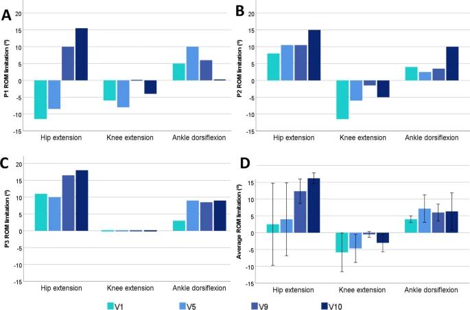 从针对3位使用者进行的外骨骼佩戴实验来看,在实验结束时所有测量值与初始状态相比都有所提高,其中髋关节屈伸运动和膝关节屈伸方面改善最为明显;而在前五次外骨骼训练中,膝关节伸展和踝关节背屈的改善最为显著。