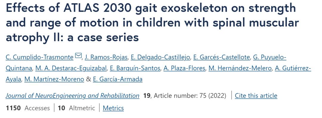 根据论文调查,Atals 2030外骨骼设备对儿童的下肢力量改善有很好的治疗效果,这项研究也可以作为未来Atlas 2030以儿童康复的一部分进行临床整合的初步支持。