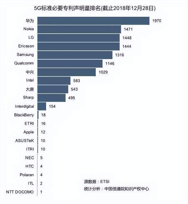 2018年12月,诺基亚的5G标准必要专利声明量就已经超过1471件,在全球通信厂商中排第二,占比为13%,仅次于华为的17%。