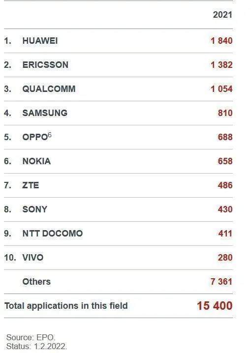 正是因为尝到了专利诉讼的苦,国内厂商在5G专利层面也在不断发力。欧洲专利局公布的2021年专利指数报告中,中国的专利申请量在数字通信技术领域上以较大,前十申请者中就有华为、OPPO、中兴、vivo这些中国企业。