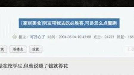 2004年天涯论坛有个帖子,一个女大学生和男友第一次去吃必胜客,她担心自己150元的预算不够花,于是来问网友应该怎么点菜。