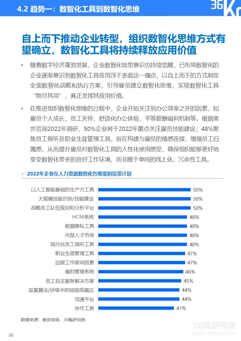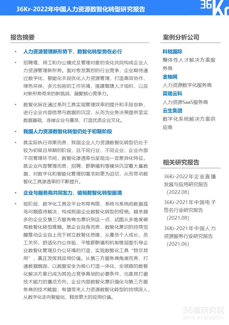 36氪研究院 | 2022年中国人力资源数智化转型研究报告