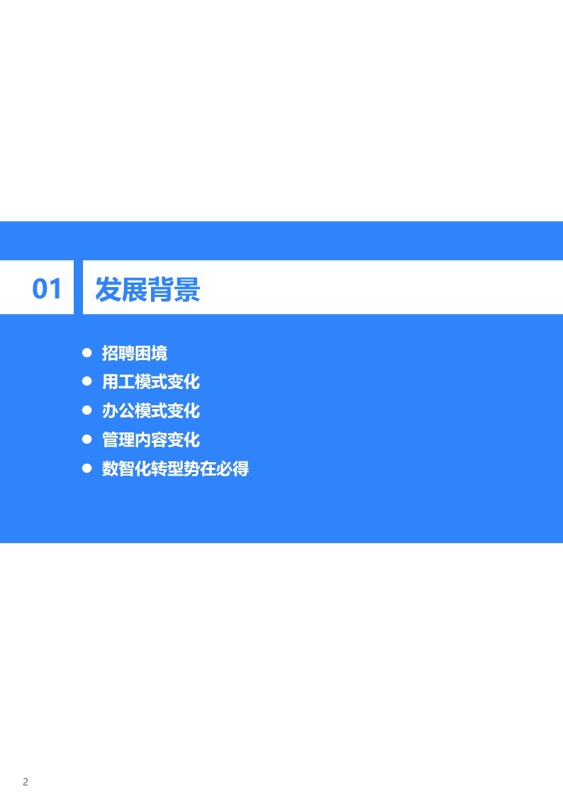 一方面,在我国经济增长放缓、疫情常态化的时代背景下,招聘难、用工及办公模式的变化驱动企业探索更为有效且高效的招聘、人事管理及组织人才建设路径;另一方面,随着Z世代进入职场及ESG治理架构渗透率提升,企业人才管理诉求也呈现出不同于以往的特征,多元、平等、绿色的工作环境有待建立。数智化工具的应用无疑为企业破解上述管理难题带来新思路:通过数字化、智能化人力资源管理工具,打造高效协作、绿色环保、多元包容的工作环境,为企业打造强有力、稳定且可持续的人才中坚力量。