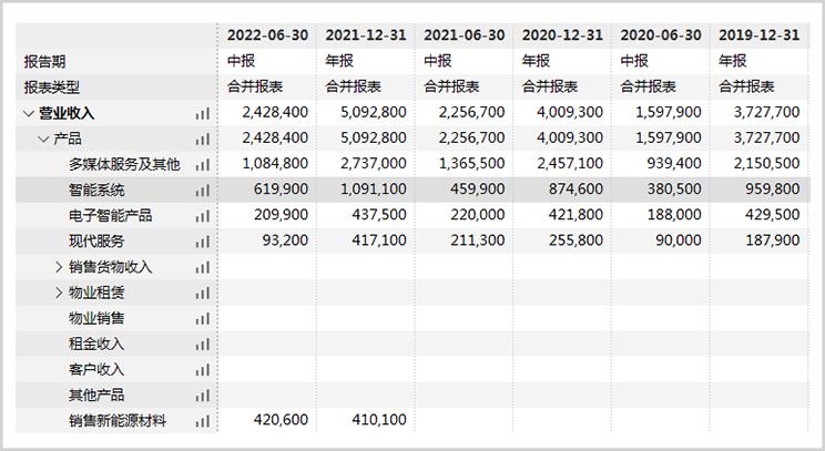 现在的情况是,2022年上半年创维只创造了243亿的营收,解构其业务组成,2023年冲击千亿营收已经基本成了泡影。