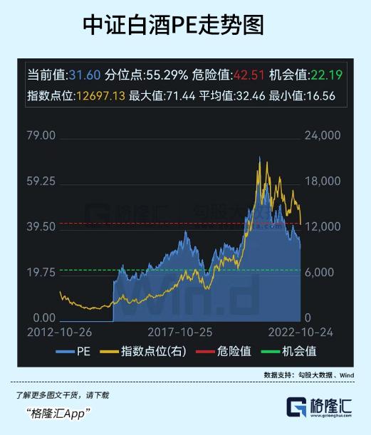 市场对酒企业绩一致性的高速增长预期开始动摇,杀估值也就是必然。目前,中证白酒PE-TTM为31.6倍,处于最近10年中位数水平,离估值下限的22.19倍还有较大距离。可见,在今日白酒大跌之后,估值也没有太过便宜,基本还是处于相对合理的状态。从去年2月至今,白酒一直在还超高估值的债,要知道那时PE高达70倍以上。