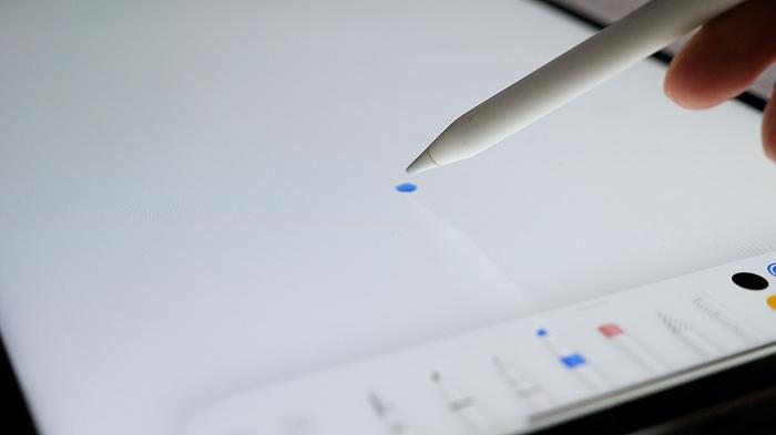 有点意外的是,推出多年的Apple Pencil二代,在2022款iPad Pro上迎来了全新的悬停功能。比如将Apple Pencil悬停在iPad Pro上方,就能显示将要落笔的颜色。