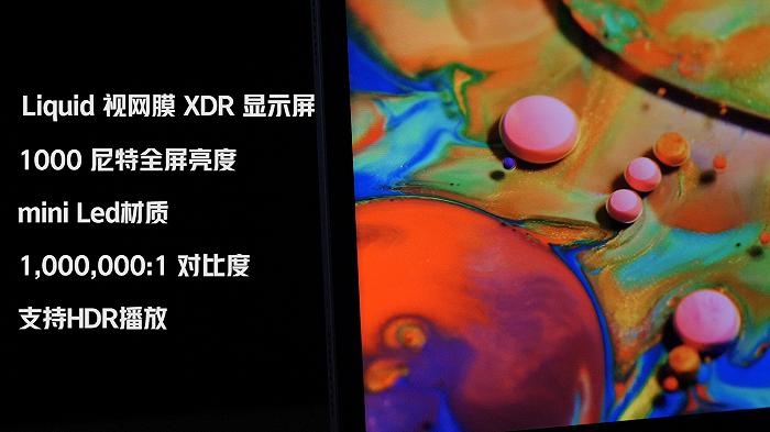 12.9英寸的iPad Pro,拥有一块Liquid视网膜XDR显示屏,这里的XDR是这个版本的独有特性,即mini Led屏幕材质,而这块屏幕的各项参数也相当优秀: