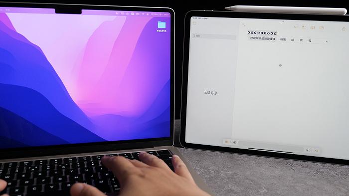 其二是随航功能。隔空投送屏幕至iPad Pro之后,Mac的键鼠、触控板可以直接控制iPad Pro,完成一套外设控制两个系统,同时触控板的各种手势操作,例如四指上滑调出后台,都支持在iPad Pro上使用。