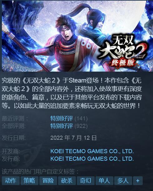 今年7月,“游戏搬运工”光荣又把首发于2011年的老游戏《无双大蛇2》搬上了PC平台,上线后收获了88%的好评,引出不少老玩家在评论区回味青春。