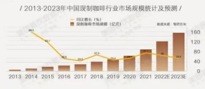 中国现制咖啡行业市场规模统计,来源:美团餐饮数据观