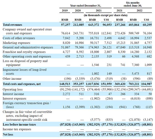 根据招股书解释,亏损原因主要在于新冠肺炎疫情和全球通货膨胀带来的不利影响。人力、房租、原材料等成本都在上涨,比如关键原料咖啡豆的单价自2021年1月到2022年1月上升了16.6%,而店铺租金也在以每年3%-5%的速度逐年上涨。
