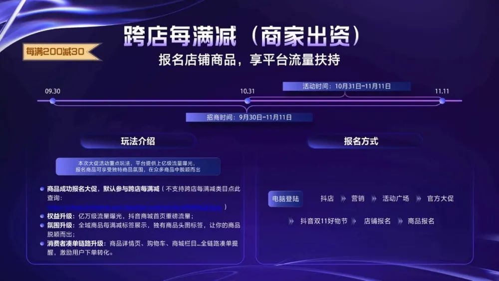 此外还将结合“跨店满减”核心玩法,联合商家设置多种补贴,并为商家提供亿级流量曝光、抖音商城首页流量曝光机会。