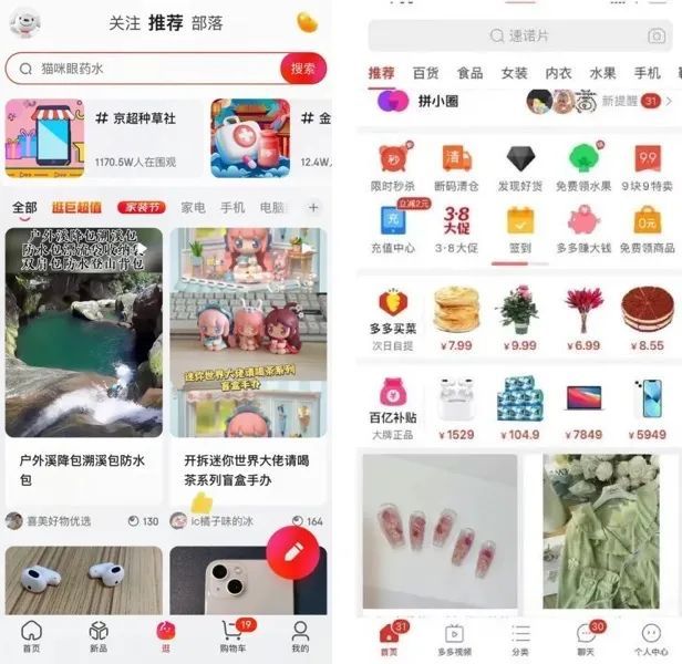 还先后推出了百亿补贴(现改名为“超值购”)、拼团、秒杀等分区,让用户的购物习惯从兴趣电商中的“激情购买”,逐步向“刚性购买”发展。