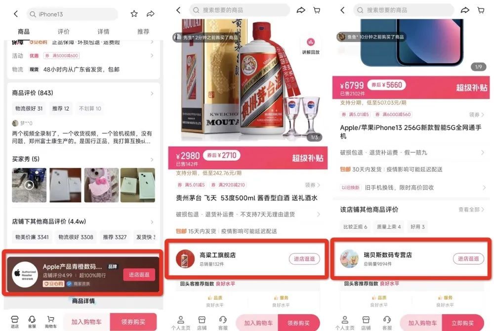 当交易回归到“人找货”,尤其涉及购买消费电子、美妆等单价较高的单品时,供应链质量、售后、物流、信任体系等,才是平台们比拼的核心竞争力。而在这些方面,抖快相比京淘仍有差距。最直观的案例是,目前抖快商城力推的iPhone、飞天茅台等尖货,基本源自第三方供应链。而京淘早已实现了品牌旗舰店或官方授权自营。