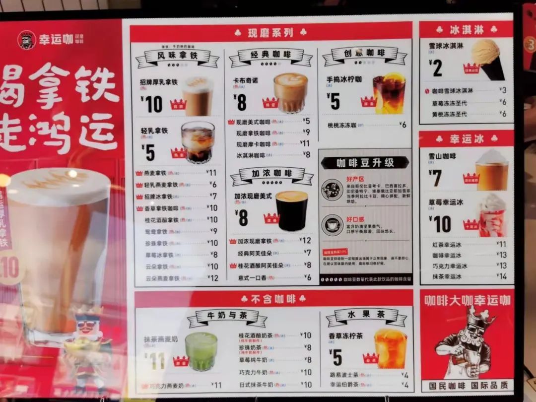 作为蜜雪冰城内部孵化的咖啡项目,幸运咖的市场策略也和蜜雪冰城一脉相承,凭借着5元钱的美式,8元钱的卡布奇诺,避开了与精品咖啡的竞争,用平价的精致专注于做小城市场。