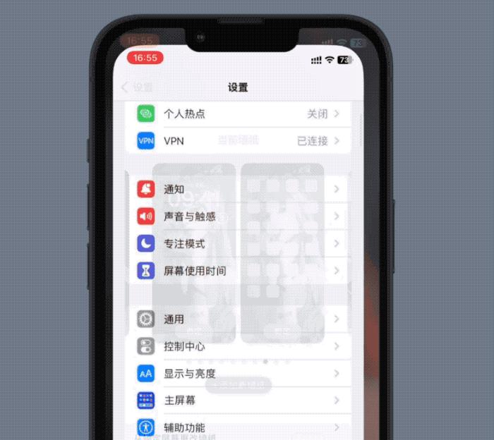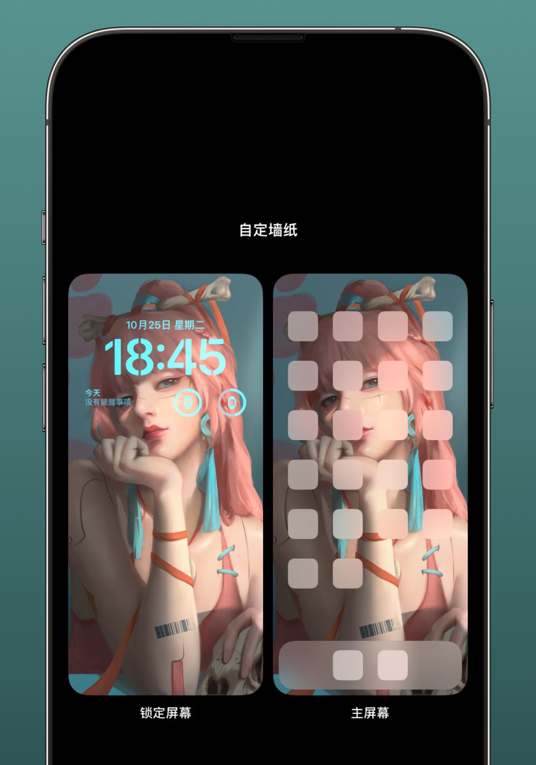不过 iOS16.1 优化了这一项设置,在锁屏页面长按之后,你可以直接设置主屏壁纸了。