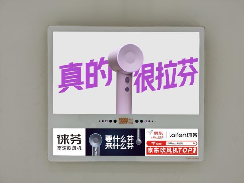 在品牌形象塑造后引流的承接上,徕芬选择在新媒体营销上持续发力。线下投放写字楼、住宅区等狭窄场景的空间性媒介,以谐音梗“真的很拉芬”、“明星都是吹出来的”深化品牌潮流化,再叠加线上加码抖音、小红书等新媒体投放,全方位接触潜在消费人群,年轻语言与年轻的沟通方式缩短了Z时代情感连接路径,也精准定位“成为年轻人的第一台高速吹风机”,击中年轻消费者心智高地,从而达到强化以“高速”技术水平破圈吹风机品类。
