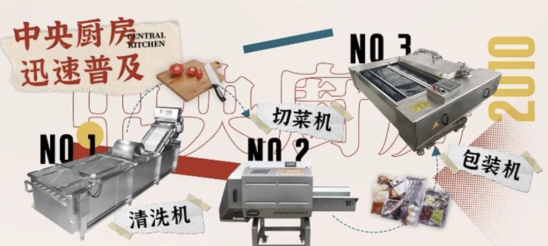 2010年,中央厨房的模式在国内迅速普及。中央厨房的工厂通过清洗机、切菜机、包装机这些设备组成生产线,生产出半成品,大大推进了连锁餐饮行业的发展。