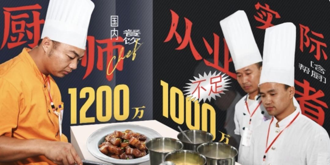 就这样,厨师在资本的围剿下,不断减少。目前国内餐饮需要的厨师数量,是1200万人。而现在实际在岗的呢,只有不到1000万人。