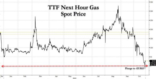 当地时间10月24日,欧洲部分天然气现货价格一度跌成负数,至-15.78欧元/兆瓦时,为有史以来的最低价格。价格降至负数意味着,天然气生产商实际上是在花钱请人把天然气从他们手中拿走。