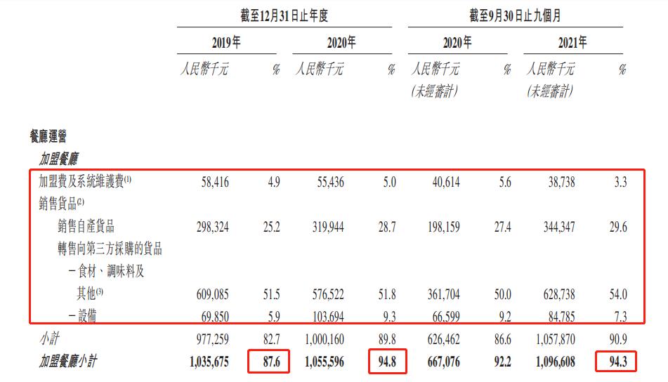 同期,杨国福麻辣烫来自加盟餐厅的收入分别为10.357亿元、10.556亿元、10.966亿元,分别占有关年度或期间总收入的87.6%、94.8%、94.3%。