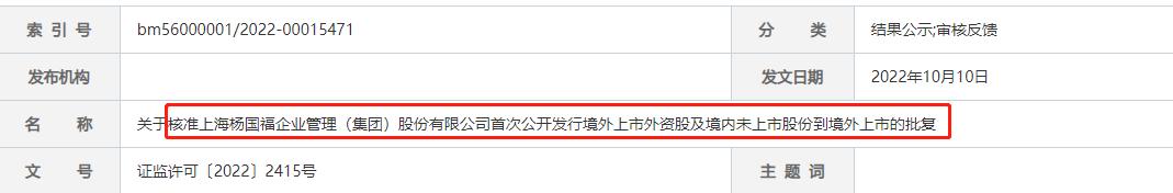 批复内容显示,核准杨国福发行不超过3.95亿股境外上市外资股,每股面值人民币0.1元,全部为普通股。完成本次发行后,杨国福可到香港联合交易所主板上市。