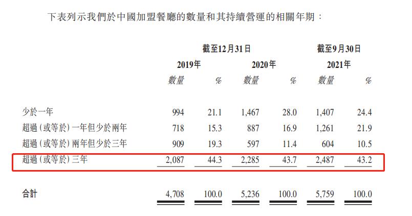 至于原因,杨国福说,一方面是经营不善,另一方面是不符合杨国福管理标准被终止合作。招股书还显示,杨国福超过40%加盟餐厅的营运年期超过或等于3年,60%左右的餐厅营运年期不到3年。