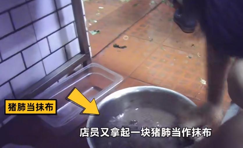 “蟑螂随处可见,食材被老鼠咬过,店员知道却仍然使用,厨房抹布同时洗菜洗鞋,猪肺不清理便直接水煮使用,配料袋直接下锅煮……”。