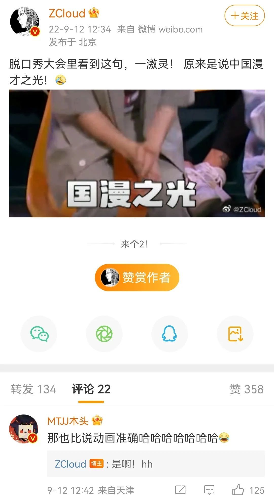“国漫之光”的称谓风靡市场这么多年,没想到有天还能在三次元综艺里遇见。 《脱口秀大会 第五季》第二期里漫才组合晋级时,有选手笑称其为“国漫之光”,巧妙取到了“中国漫才的希望”之意。